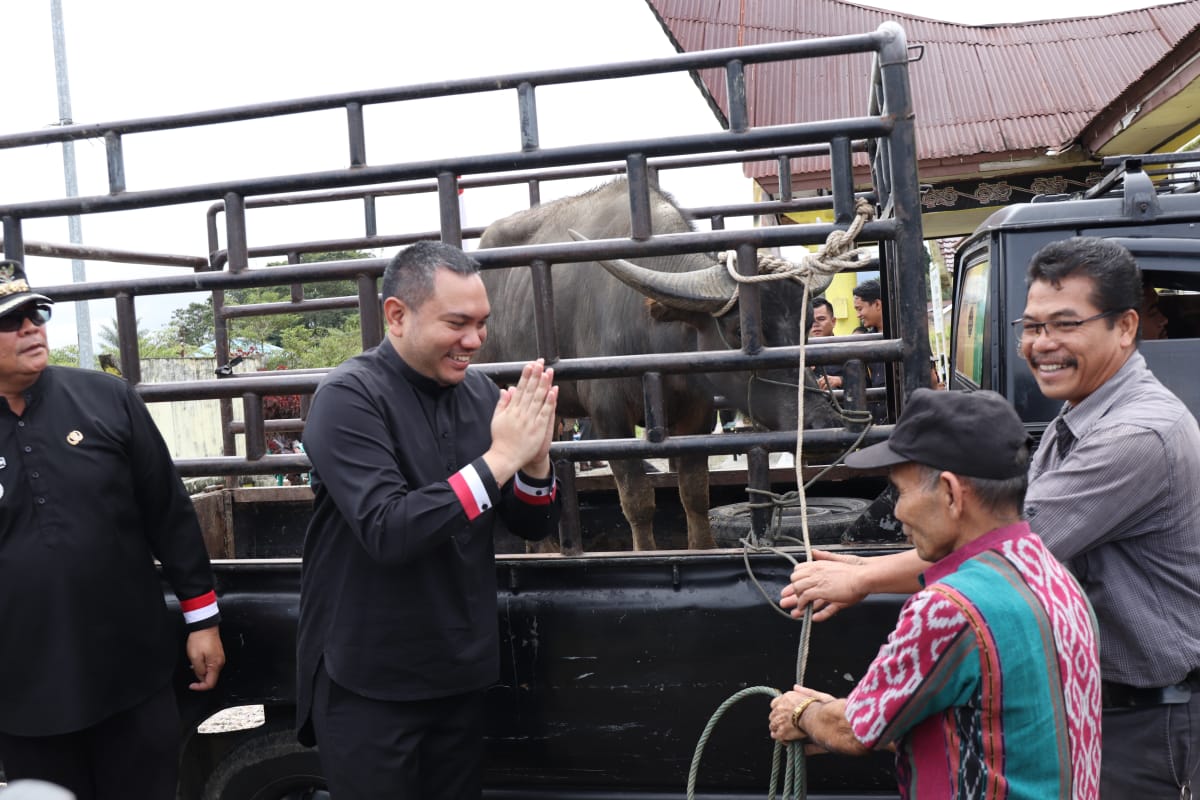 Pakpak Bharat, Ruangpers.com – Bupati Pakpak Bharat, Franc Bernhard Tumanggor, menyerahkan bantuan Pemerintah dalam pelaksanaan Ritual Adat “Menanda Tahun” se-Kabupaten Pakpak Bharat, di halaman Kantor Camat Pergetteng-Getteng Sengkut, Rabu (22/02/2024).
