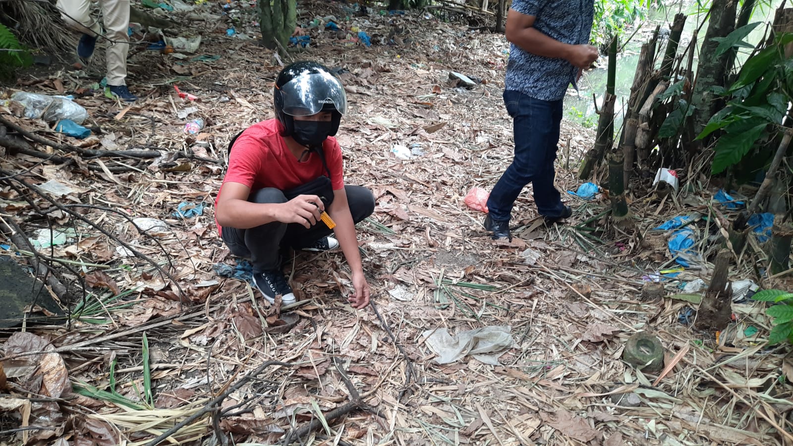 Lalu dilakukan penggeledahan, di sekitaran lokasi dan di bawah rumpun bamboo, ditemukan 1 buah aqua gelas yang berlobang dua, 3 (tiga) buah pipet, 4 (empat) plastik klip kosong dan 1 buah mancis.