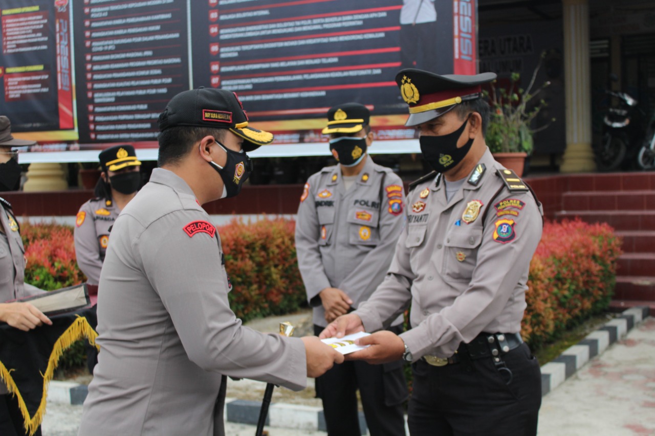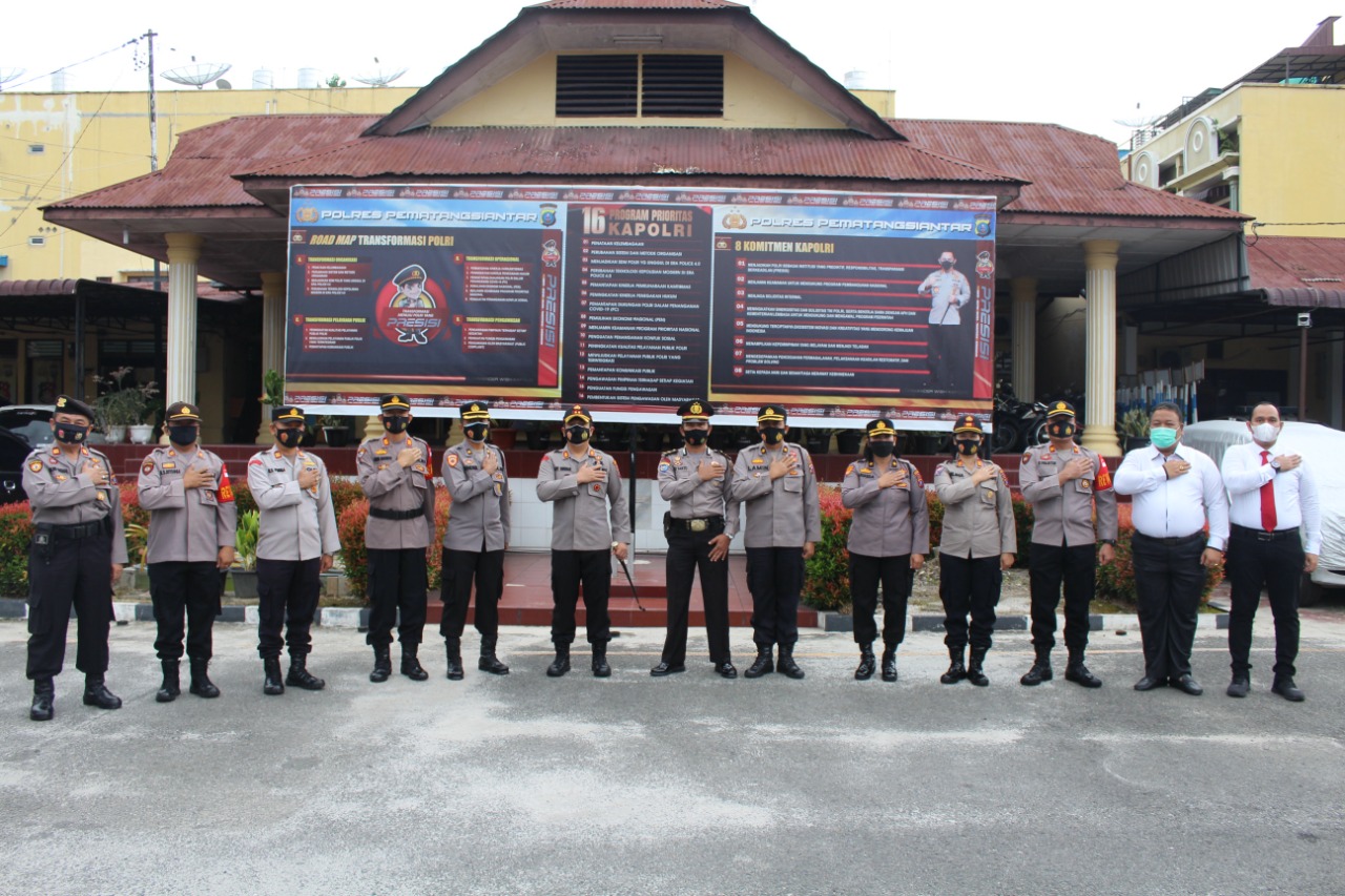 Upacara berlangsung dengan protokol kesehatan dan diikuti para Kabag, Kasat, Kapolsek jajaran, Perwira dan personil Polres Pematangsiantar.