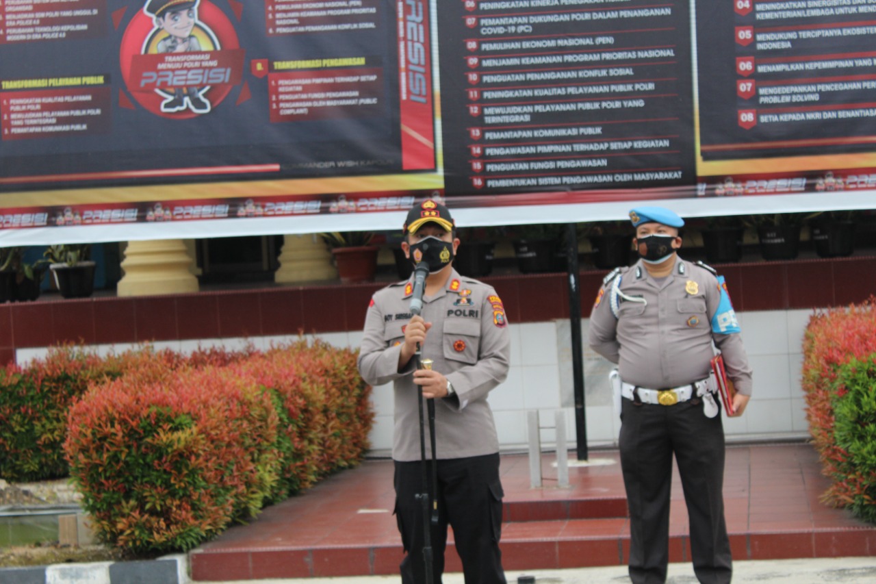 Upacara berlangsung dengan protokol kesehatan dan diikuti para Kabag, Kasat, Kapolsek jajaran, Perwira dan personil Polres Pematangsiantar.