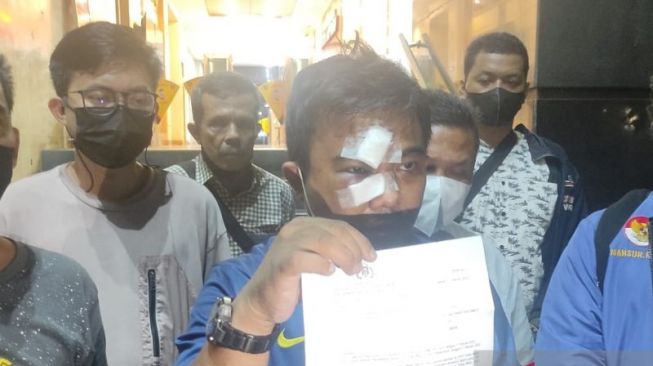 Ketum KNPI Haris Pertama melaporkan peristiwa pengeroyokan yang dialaminya di salah satu restoran di Cikini, Jakarta Pusat, ke Polda Metro Jaya, Senin malam (21/2). [Ist]
