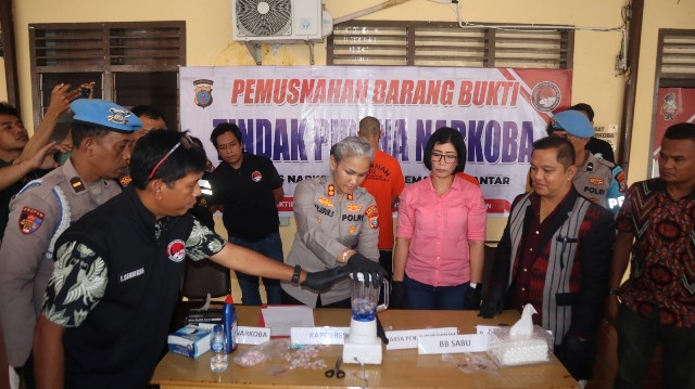 Barang bukti sabu tersebut dimusnahkan dengan cara diblender, lalu dibuang ke saluran khusus sesuai SOP penanganan narkotika. Pemusnahan dilakukan setelah melalui proses verifikasi dan pemeriksaan oleh pihak terkait.