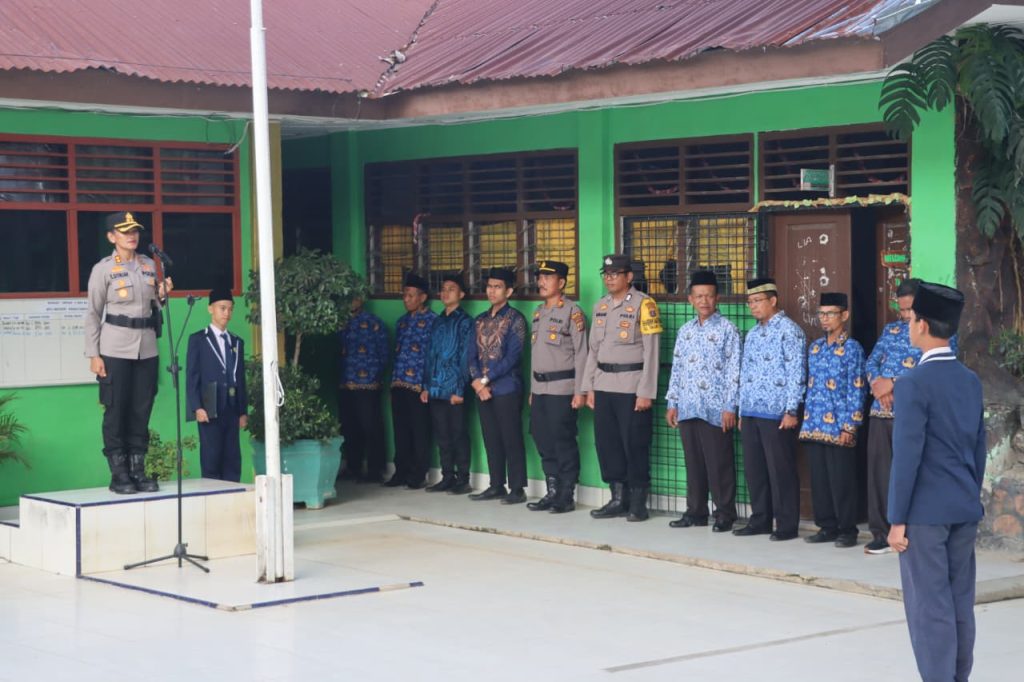 Kapolres Pematangsiantar, AKBP Sah Udur T.M. Sitinjak SH, SIK, MH, menjadi pembina upacara dalam kegiatan Police Go To School, di Sekolah MTsN (Madrasah Tsanawiyah Negeri) Kota Pematangsiantar, pada Selasa (28/10/2025) pagi.