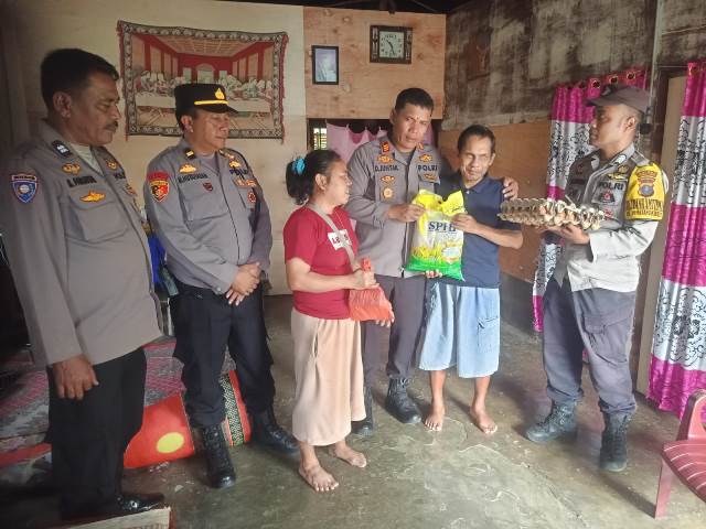 Kapolsek Siantar Marihat, AKP Doni Simanjuntak SH, memberikan bantuan kepada warga yang membutuhkan, di wilayah hukum Polseķ Siantar Marihat, pada Rabu (25/11/2025 pagi.