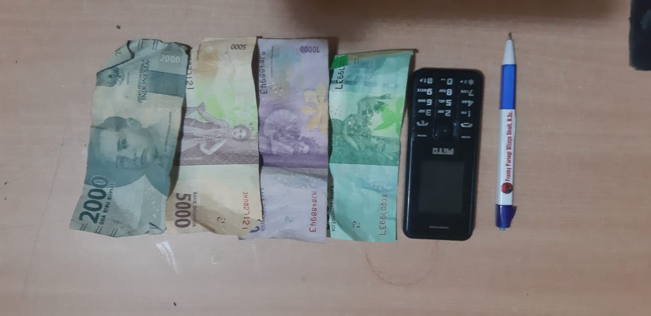 Setelah diamankan, diperoleh dari pelaku berupa 1 unit Handphone merk MITO warna hitam dan terdapat angka tebakan judi jenis Hongkong, 1 buah pulpen warna biru putih dan uang sebesar Rp. 37.000,-