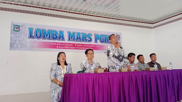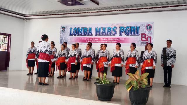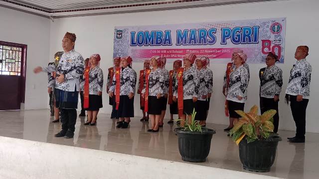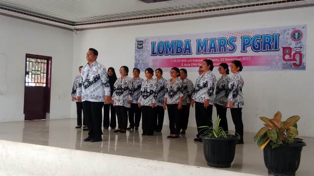 Pematangsiantar, Ruangpers.com – Menyemarakkan Hari Ulang Tahun (HUT) Persatuan Guru Republik Indonesia (PGRI) Ke 80 Tahun, yang jatuh pada Tanggal 25 November 2025, PGRI Kota Pematangsiantar Masa Bakti 2025 – 2030, menggelar Lomba Mars PGRI yang diikuti para Guru dari 8 Kecamatan, pada Sabtu pagi (22/11/2025), pukul 09.00 WIB, di Aula SMA Negeri 1 Pematangsiantar, Jalan Parsoburuan Kota Pematangsiantar.