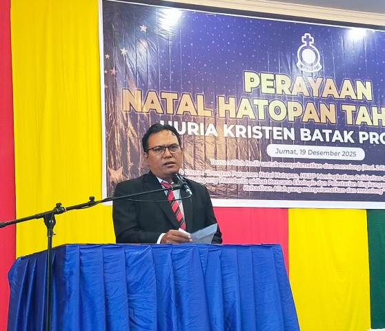 Huria Kristen Batak Protestan (HKBP) merayakan natal yang dilaksanakan di Aula Universitas HKBP Nommensen Pematangsiantar (UHKBPNP), pada Jumat (19/12/2025).