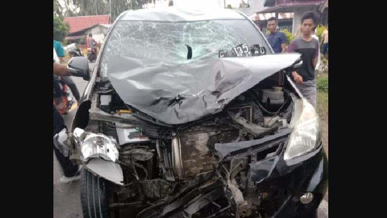 Saat bersamaan melintas mobil Avanza hitam berpelat nomor F 1135 KD yang datang dari arah berlawanan.