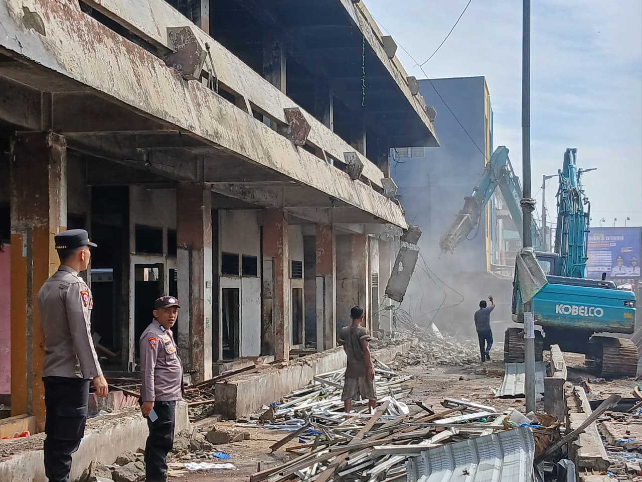 Pemtangsiantar, Ruangpers.com – Polres Pematangsiantar melalui personil IPDA Revanto Barasa SH, AIPTU Edi Syahputra, AIPDA A. Sinulingga, AIPA Saut M. Tua Manurung dan BRIPKA Ricky Van Fauzy menggelar patroli kegiatan pembongkaran Gedung IV Pasar Horas, Jalan Merdeka, Kelurahan Dwikora, Kecamatan Siantar Barat, Kota Pematangsiantar, pada Kamis (9/10/2025) pagi, pukul : 09.00 WIB.