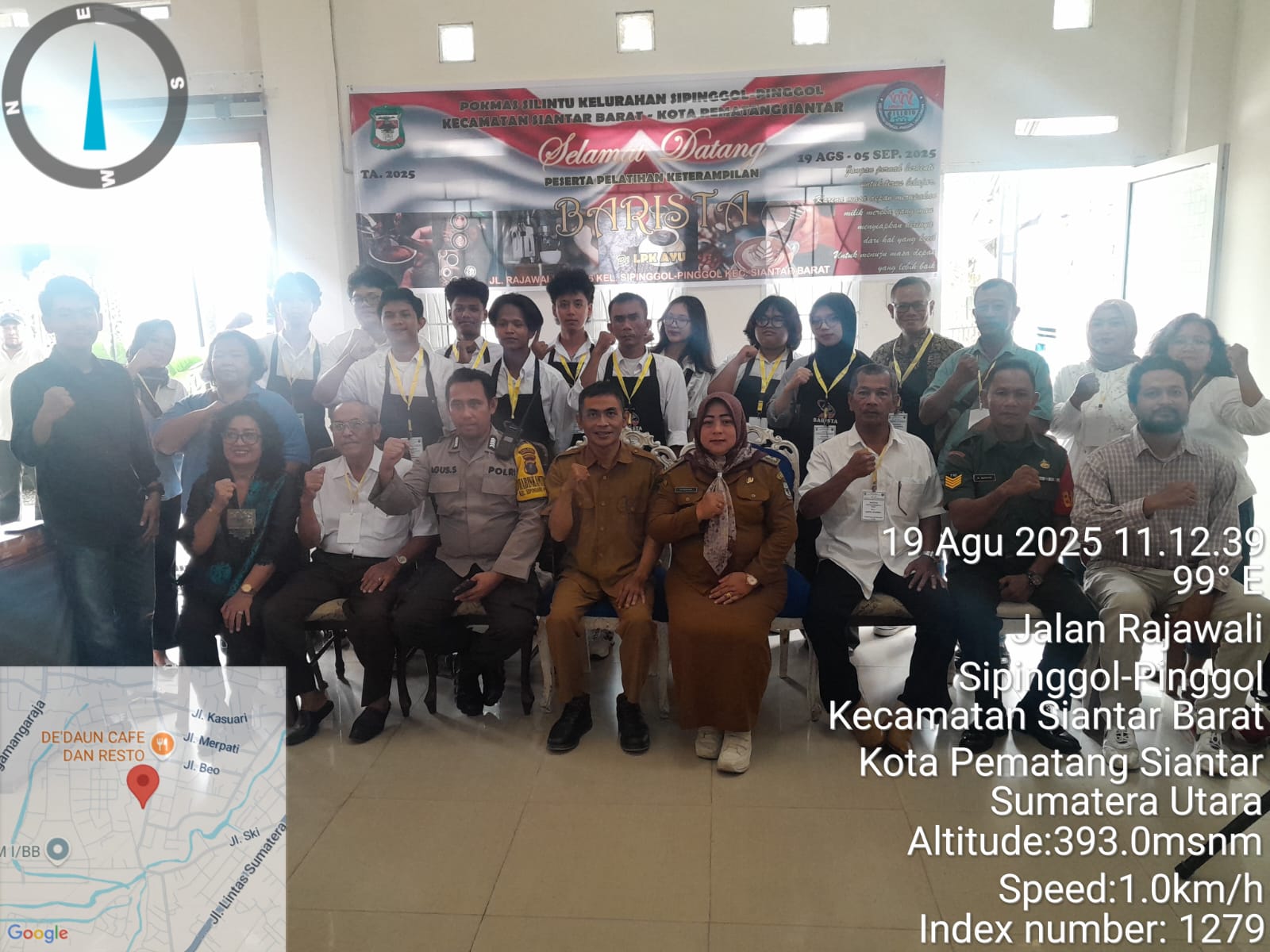 Pematangsiantar, Ruangpers.com – Polsek Siantar Barat – Polres Pematangsiantar melalui Bhabinkamtibmas Kelurahan Sipinggol – pinggol, BRIPKA Agus R, menghadiri pembukaan pelatihan barista, di Jalan Rajawali, Kelurahan Sipinggol – pinggol, Kecamatan Siantar Barat, Kota Pematangsiantar, tepatnya LPK Ayu, pada Selasa (19/8/2025) pagi, sekitar pukul : 10.30 WIB.