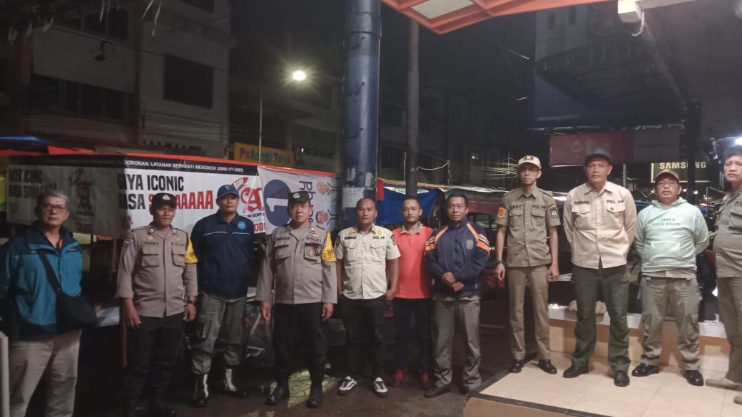 Pematangsiantar, Ruangpers.com – Bhabinkamtibmas Polsek Siantar Barat – Polres Pematangsiantar, Aiptu Welinton Nababan dan Bripka Surya Darma, melaksanakan patroli di eks Gedung IV Pasar Horas dan sambangi para pedagang, di tempat relokasi, Jalan Merdeka bawah, Kelurahan Dwikora, Kecamatan Siantar Barat, Kota Pematangsiantar, pada Senin (6/10/2025) malam, sekira pukul : 22.30 WIB.
