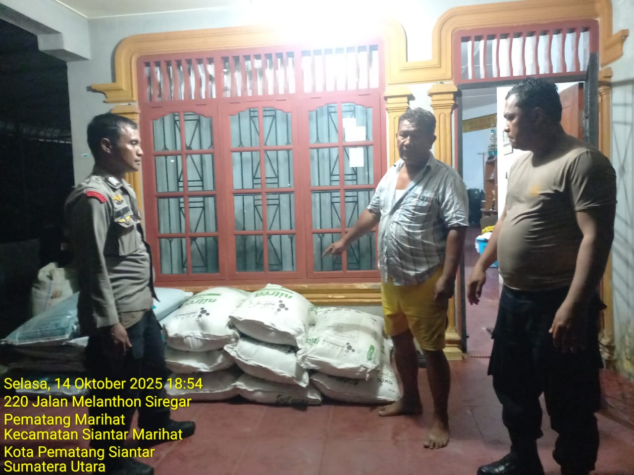 Pematangsiantar, Ruangpers.com – Kapolsek Siantar Marihat, AKP Doni Simanjuntak SH, diwakili Kanit Intelkam, IPDA Edison Sitohang, bersama Bhabinkamtibmas, mendistribusikan bantuan pupuk kepada warga, Bapak Kompol (Purn) .P. Hutasoit, di Jalan Melanthon Siregar, Gang Kuku Balam, Kelurahan Pematang Marihat, Kecamatan Siantar Marimbun, Kota Pematangsiantar, pada Selasa (14/10/2025) sore, pukul : 16.00 WIB.