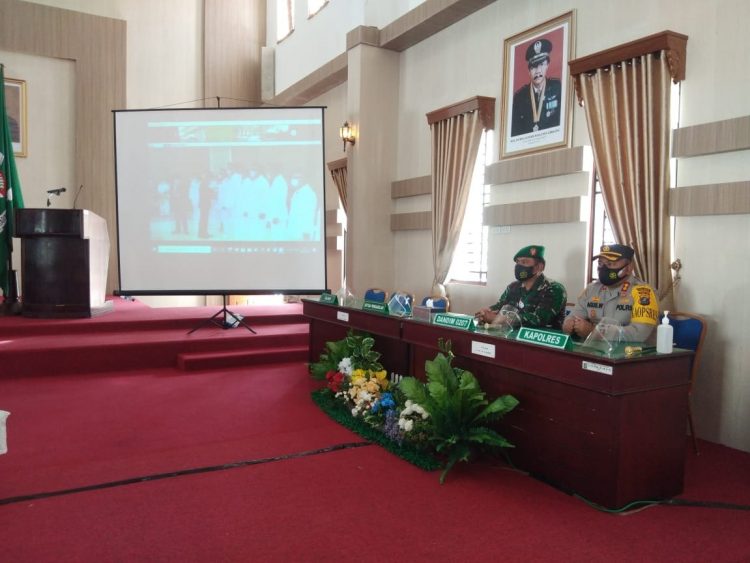 Simalungun, Ruangpers.com – Kapolres Simalungun, AKBP Agus Waluyo, S.I.K., bersama Forum Koordinasi Pimpinan Daerah (Forkopimda), menyaksikan acara pelantikan Bupati dan Wakil Bupati (Wabup) Simalungun, periode 2021-2024, secara virtual, di ruang paripurna DPRD Simalungun, di Pamatangraya, Senin (26/4/2021), pukul 09.00 WIB.