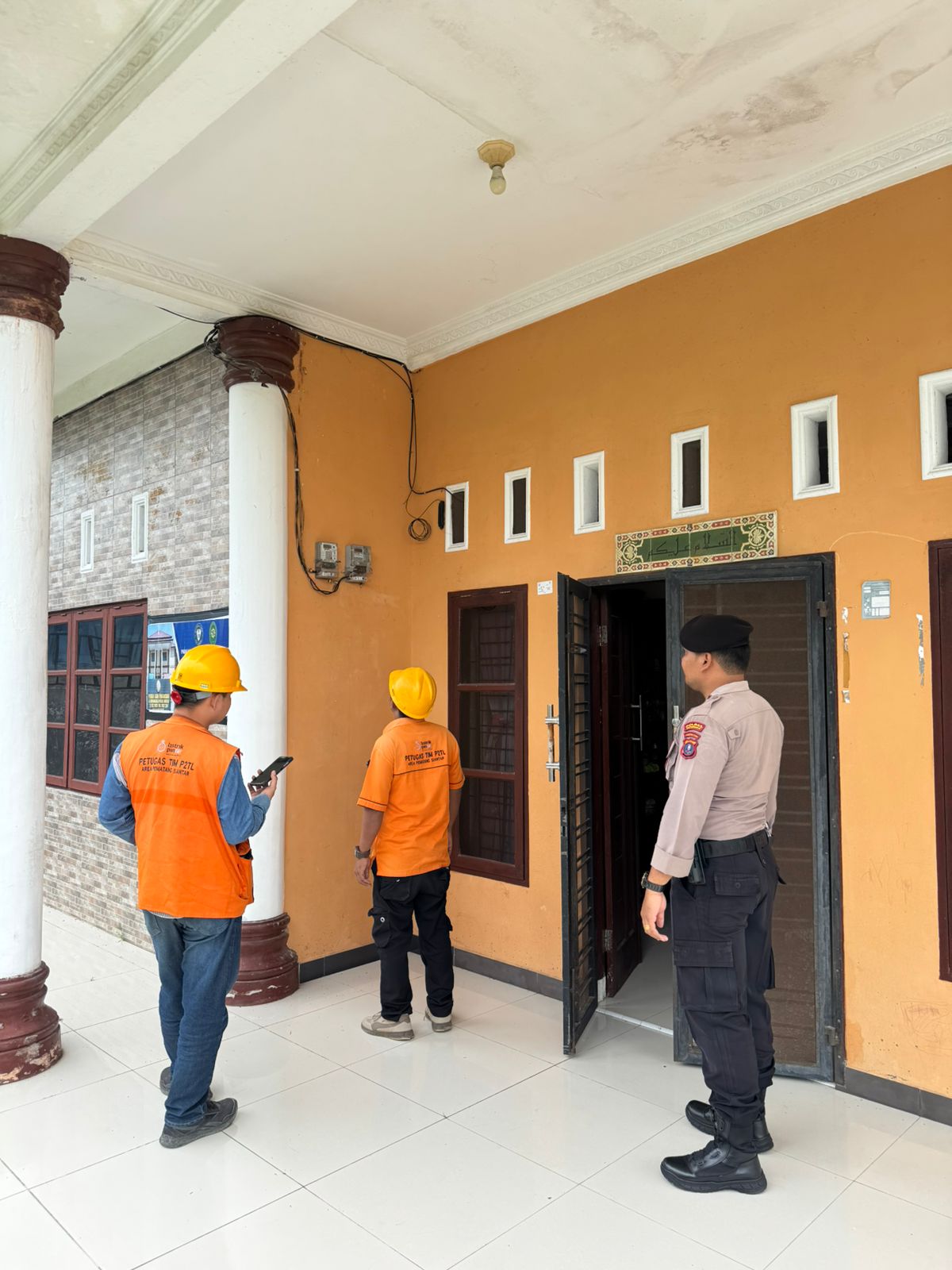 Satuan Samapta Polres Pematangsianțar melaksanakan pengamanan dan sekaligus pendampingan Penertiban Pemakaian Tenaga Listrik (P2TL) oleh petugas PLN Pematangsiantar, di pemukiman warga, pada Senin (27/10/2025) pagi.