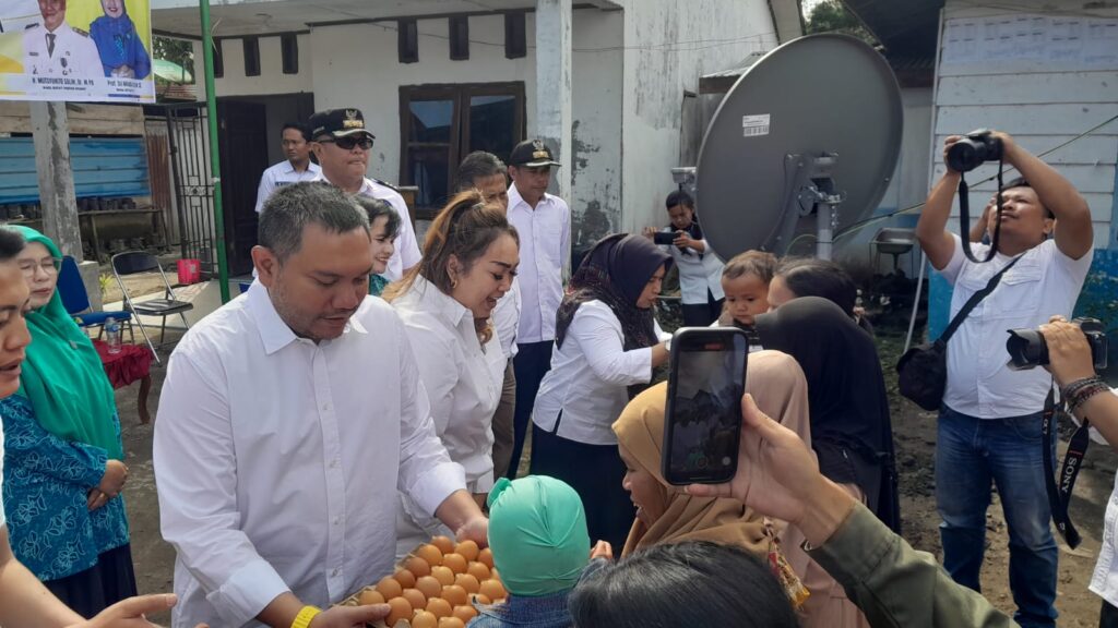 Pakpak Bharat, Ruangpers.com – Upaya menekan angka stunting, Bupati Pakpak Bharat, Franc Bernhard Tumanggor, didampingi Ketua TP PKK Pakpak Bharat, Juniatry Franc Bernhard Tumanggor, serta Kepala Cabang Bank Sumut Pakpak Bharat, Davit Manalu, bagikan makan tambahan untuk 91 anak, Rabu (28/02/2024).