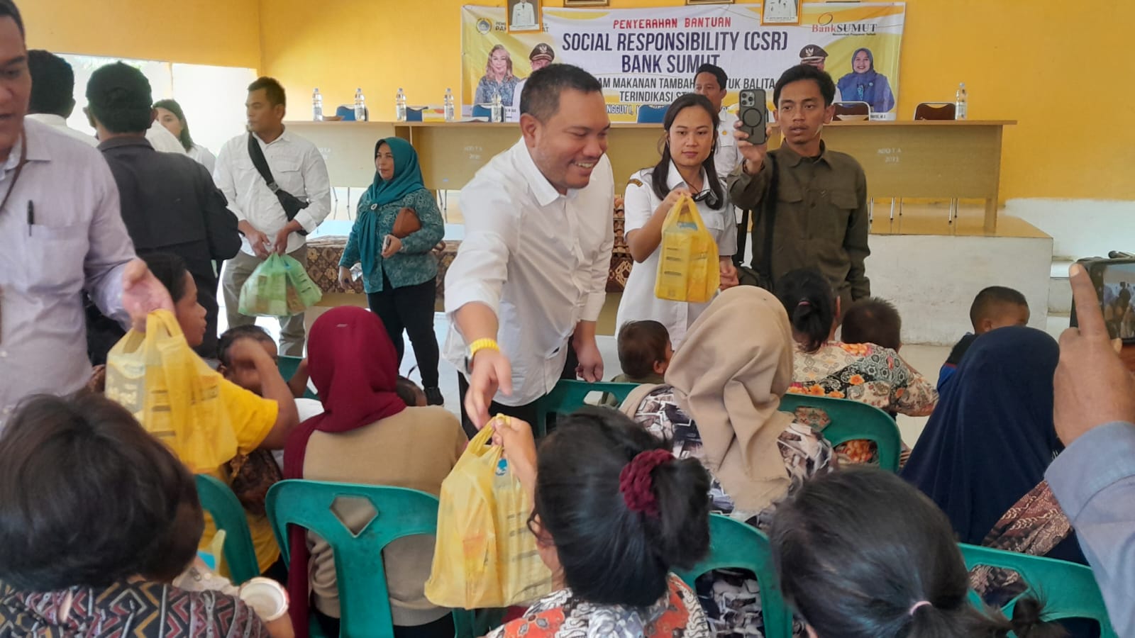Penyerahan bantuan makanan yang diterima dari hibah Corporate Social Responsibility (CSR) Bank Sumut ini bertujuan guna mendukung program pemerintah Pakpak Bharat dalam upaya menurunkan angka stunting.