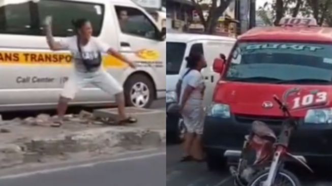 Berdasarkan video tersebut, emak-emak itu terlihat marah dan emosi kepada sopir angkot. Dia berteriak sembari membawa bongkahan batu besar di tangannya.